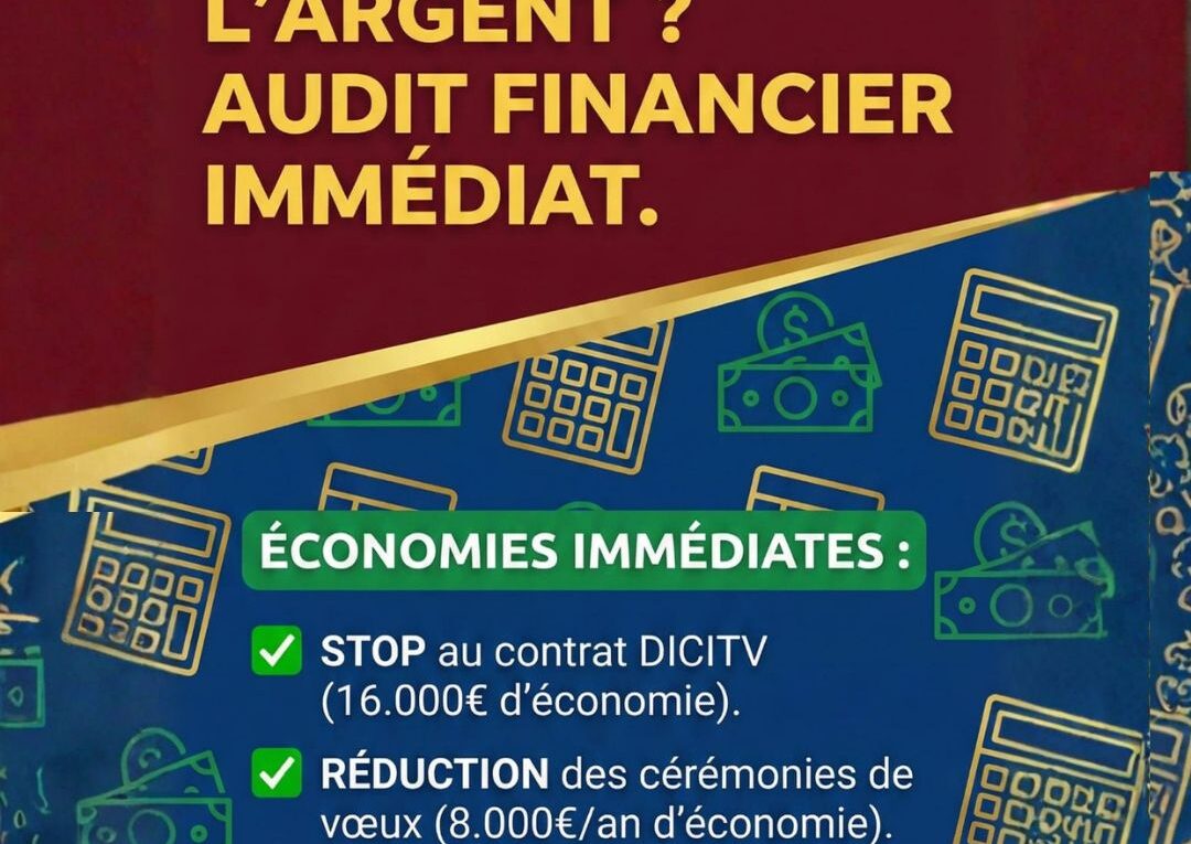 Nous demanderons un audit financier immédiat pour savoir où est passé l’argent. En attendant, nous appliquons nos premières économies :
