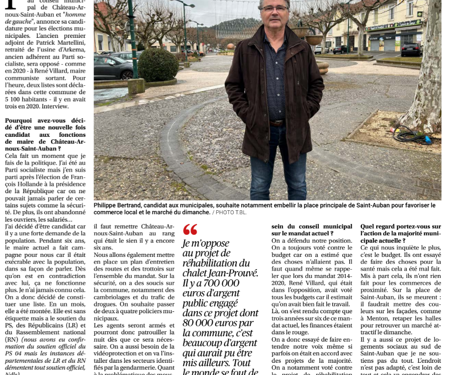 L’ancien premier adjoint et actuel conseiller municipal d’opposition propose un projet de rupture avec la politique menée par René Villard.
